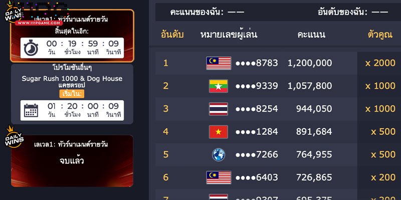 สมัครเล่นเกมค่าย Pragmatic Play ได้อะไรบ้าง กิจกรรมค่ายนี้มีทุกช่วงเวลา ลุ้นรับรางวัลโบนัสเพิ่มอีกต่อ ทั้งนี้ยังไม่รวมรางวัลกิจกรรมที่ทางเว็บไซต์ได้ทำขึ้น รวม ทัวร์นาเมนต์รายวัน แบบมีวันหมดอายุ ขณะที่สมาชิกเล่นเกมค่าย Pragmaticplay เว็บตรง มอบเงินรางวัล สร้างทัวร์นาเมนต์ในแต่ละวัน เพื่อลุ้นรับโบนัสสูงของเกม ทั้งนี้ผู้ล่นยังมองเห็น ตารางผุ้นำ จำนวนเงินที่ทำยอดสะสมในแต่ละวันของแต่ละคน พร้อมจัดอันดับ ทั่วโลก ผุ้เล่นสามารถมองเห็น ธงชาติ ของแต่ละประเทศได้ และ คะแนน จำนวนคุณ โบนัสสะสม