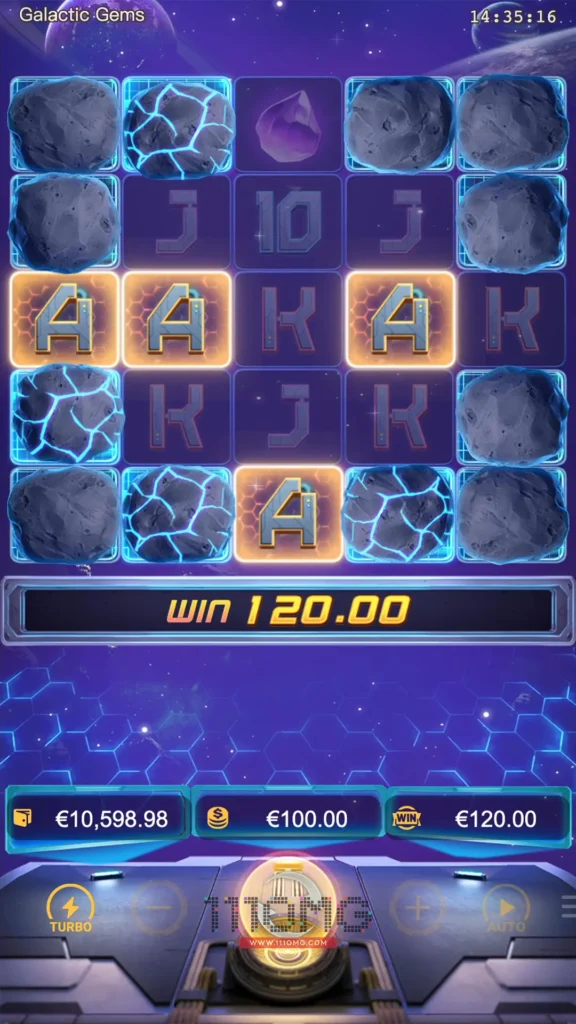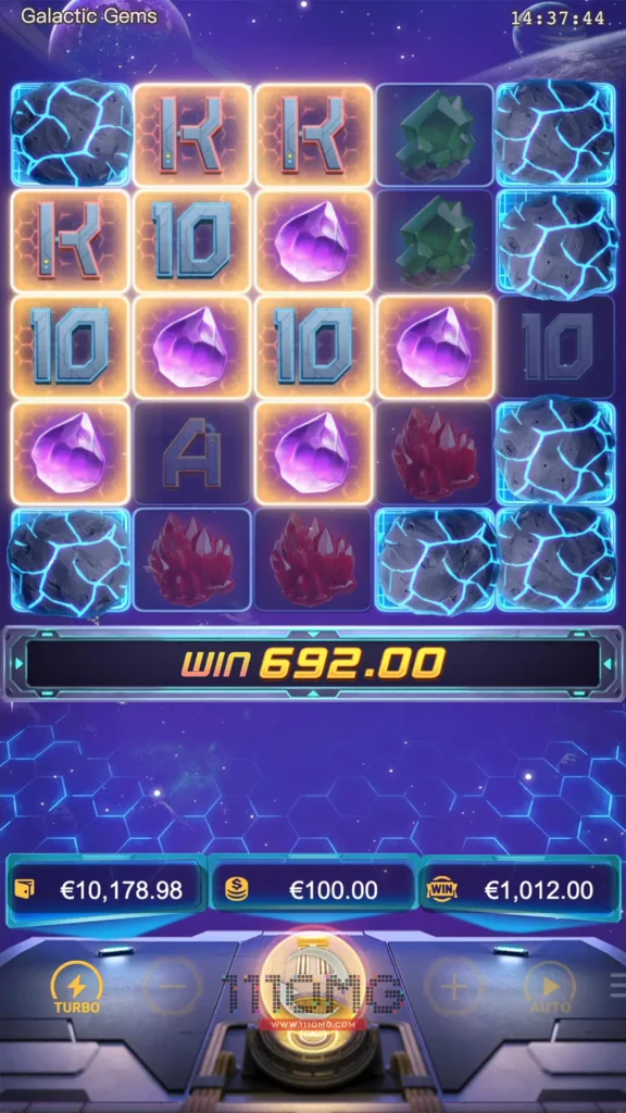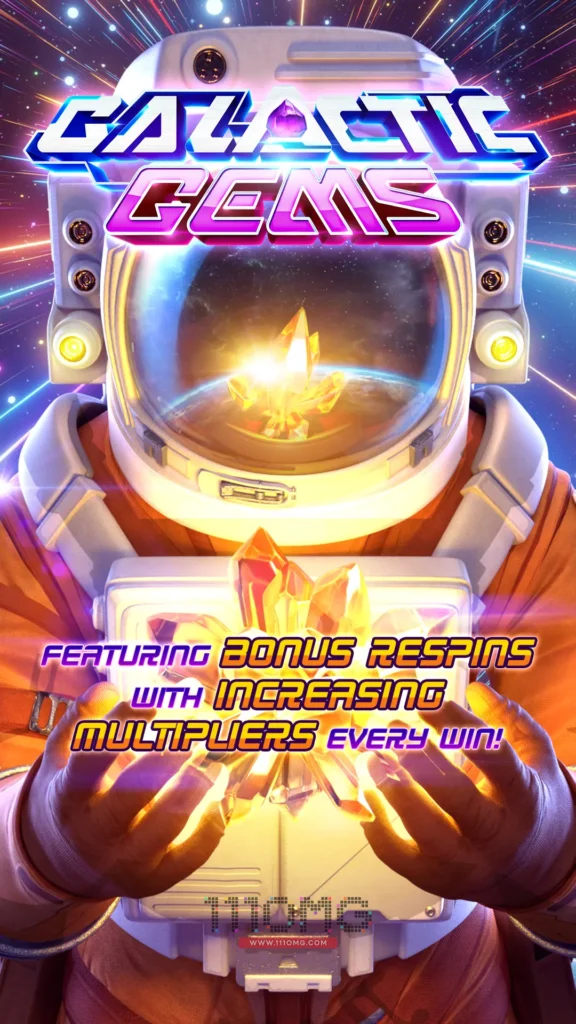 เกมสล็อตแนวอวกาศ Galactic Gems PGSLOT โดนเด่นไม่เหมือนใคร ตัวคูณเพิ่มขึ้นเป็นสองเท่า ไม่ต้องเข้าฟรีสปีนก็ได้รับรางวัล Jackpot ได้ง่ายๆ