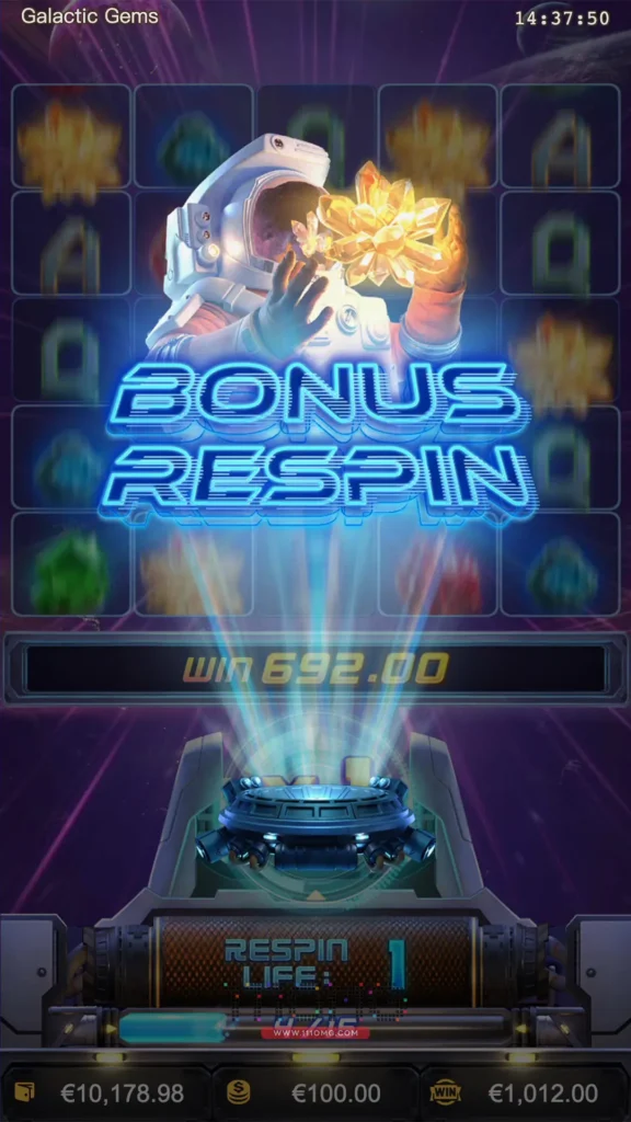 Galactic Gems PGSOFT “อัญมณีแห่งกาแล็กติก” เป็นวิดีโอสล็อต 5 รีล 5 แถวพร้อมรีสปินและรีสปินโบนัสพร้อมตัวคูณ เมื่อตัวบล็อกทั้งหมดถูกทำลาย ฟีเจอร์รีสปินโบนัสจะทำงานด้วยชีวิตพิเศษ 1 ชีวิตและตัวคูณ x1 การสะสมสัญลักษณ์ที่ชนะ 15 อันจะเพิ่มชีวิตพิเศษ 1 ชีวิต!