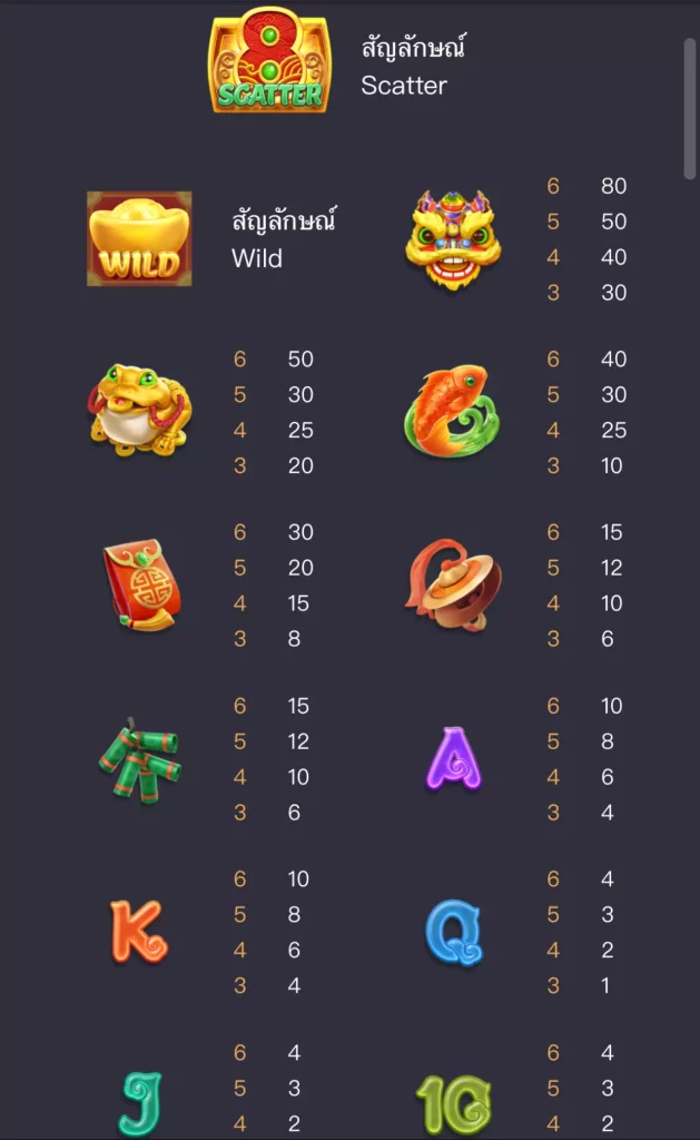 จากที่กล่าวมาข้างต้น เกี่ยวกับเกมผจญภัย ตำนานมีอยู่บนยอดเขา Fuzu เป็นวัดแห่งความมั่งคั่งที่กล่าวกันว่า เป็นพรแก่ผู้มีโชคชะตา วัดแห่งนี้ทำจากทองคำบริสุทธิ์ เมื่อไปถึงประตูวัด คางคกเงินจะเปิดประตูวัดทันที ที่ได้รับเหรียญทองพระเจ้าแห่งความมั่งคั่ง จะอวยพรผู้มีจิตใจดี การเล่นเกมนี้เหมาะสำหรับสายความหวังแห่งดวงและโชคชะตา ว่าจะลุ้นได้รับรางวัลใหญ่หรือไม่ และยังมีความพิเศษ โดยการให้สัญลักษณ์ อย่างเช่น อัตราการเดิมพัน 20-50 เท่า ให้อัตราเดิมพัน สูงเป็นอันดับรองลงมาจากอันดับหนึ่ง คือ สัญลักษณ์ กบทองคำ และอัตราการเดิมพัน 30-80 เท่า เป็นสัญลักษณ์ที่ให้อัตราเดิมพันสูงที่สุดอันดับหนึ่ง คือ สิงโตทองคำ สัญลักษณ์ wild จะช่วยทำให้โบนัสแตกง่ายขึ้นกว่าเดิม มีโอกาสที่จะได้รางวัล mega win, super win, supermega win มีสัญลักษณ์พิเศษ Scatter ที่สามารถตกลงได้ทุกวงล้อ เมื่อได้รับสัญลักษณ์ 4 ตัวขึ้นไป ที่ตำแหน่งใดก็ตาม จะมีการหมุนฟรี 10 รอบ หรือมากกว่า โบนัสตามสัญลักษณ์ที่กำหนดในเกมสล็อตนี้ ได้แก่ A K J Q 10 9 ปีก ดวง สัญลักษณ์กางเขน และอื่นๆ ที่รูปสัญลักษณ์เป็น + ที่เป็น wild และรูปสัญลักษณ์ scatter และรูปแบบของเกมวิดีโอสล็อตที่มี 6 รีลและ 5 แถว ลุ้นชนะรับรางวัลใหญ่ และเกมสล็อตนี้มีโหมดซื้อฟรีสปิน ซื้อและใช้งานได้ทันทีซึ่งมันคุ้มมากกับราคาจ่าย และคุณสามารถไปทดลองเล่นฟรีก่อนได้อีกด้วยในเว็บนี้