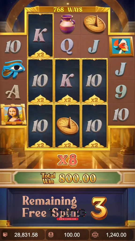 เกมใหม่พีจี Museum Mystery เป็นวิดีโอสล็อต 5 รีล (4 แถวในรีล 1 และ 5, 6 แถวในรีล 2, 3 และ 4) ที่มีสัญลักษณ์ Mystery พร้อมตัวคูณ x2 การชนะใดๆ ที่เกี่ยวข้องกับสัญลักษณ์ Mystery จะคูณด้วยตัวคูณทั้งหมดจากสัญลักษณ์ Mystery ที่เกี่ยวข้องกับการชนะนั้น! การสะสมสัญลักษณ์ Scatter 3 อันจะมอบรางวัลให้คุณเป็น 3 เท่าของจำนวนเงินเดิมพันและเรียกใช้ฟรีสปิน 10 ครั้ง!