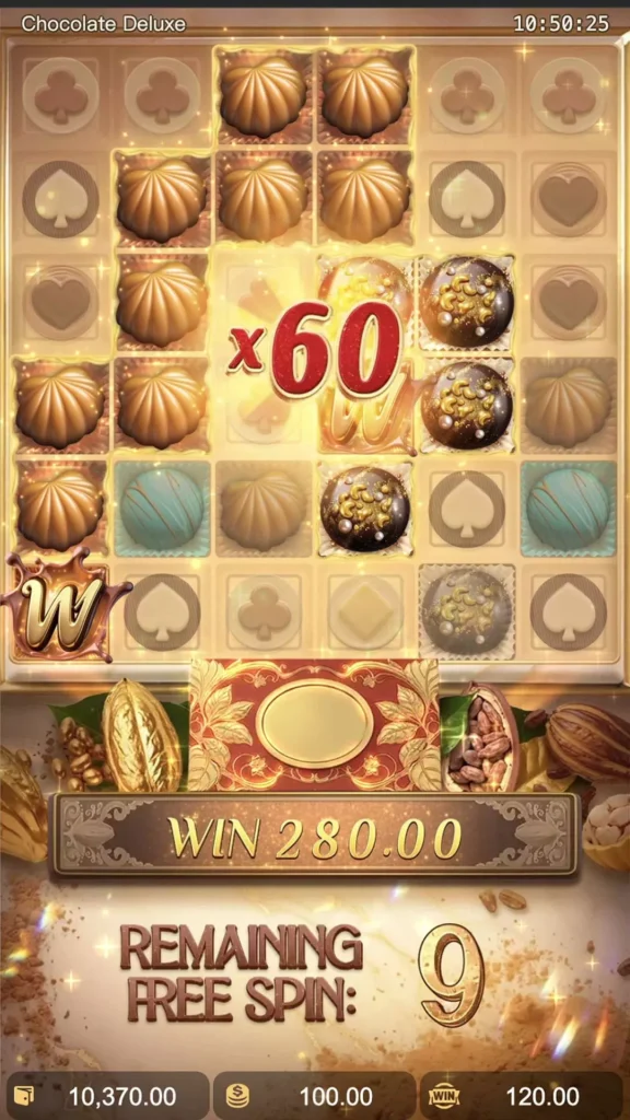 เกมสล็อต Chocolate Deluxe เป็นวิดีโอสล็อตแบบ 6×6 สัญลักษณ์ที่รวมกัน โดยมีสัญลักษณ์ชนะแบบเหนียวหนึบพร้อมตัวคูณสูงสุดถึง x100 ตัวคูณของสัญลักษณ์ชนะจะเพิ่มขึ้น ทำให้คุณมีโอกาสชนะมากขึ้น! นอกจากนี้ สัญลักษณ์ Scatter 3 อันจะเปิดใช้งานฟรีสปิน 10 ครั้ง!เริ่มเกมตอนนี้และออกเดินทางสู่การเดินทางแสนหวาน ในโลกแห่งช็อกโกแลตและความโรแมนติก ค้นพบความทรงจำแสนหวานของคุณเอง!