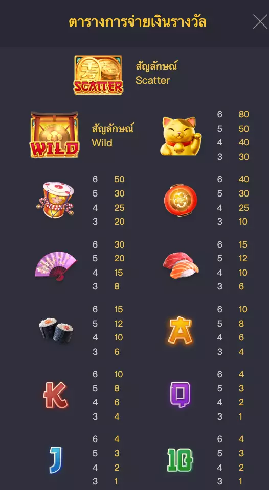 อัตรา ตารางการจ่ายเงินรางวัล วิธีเล่น Lucky Neko